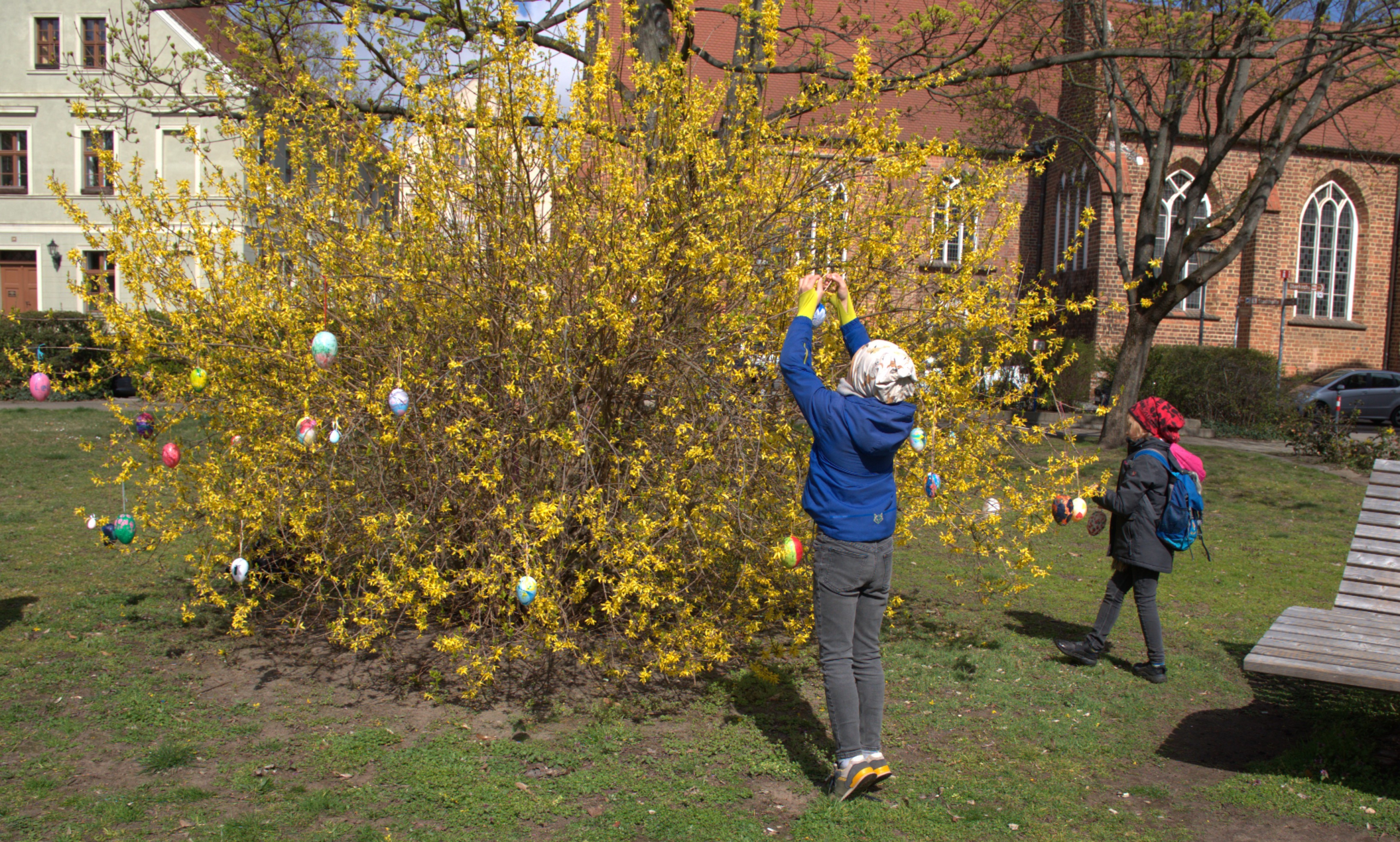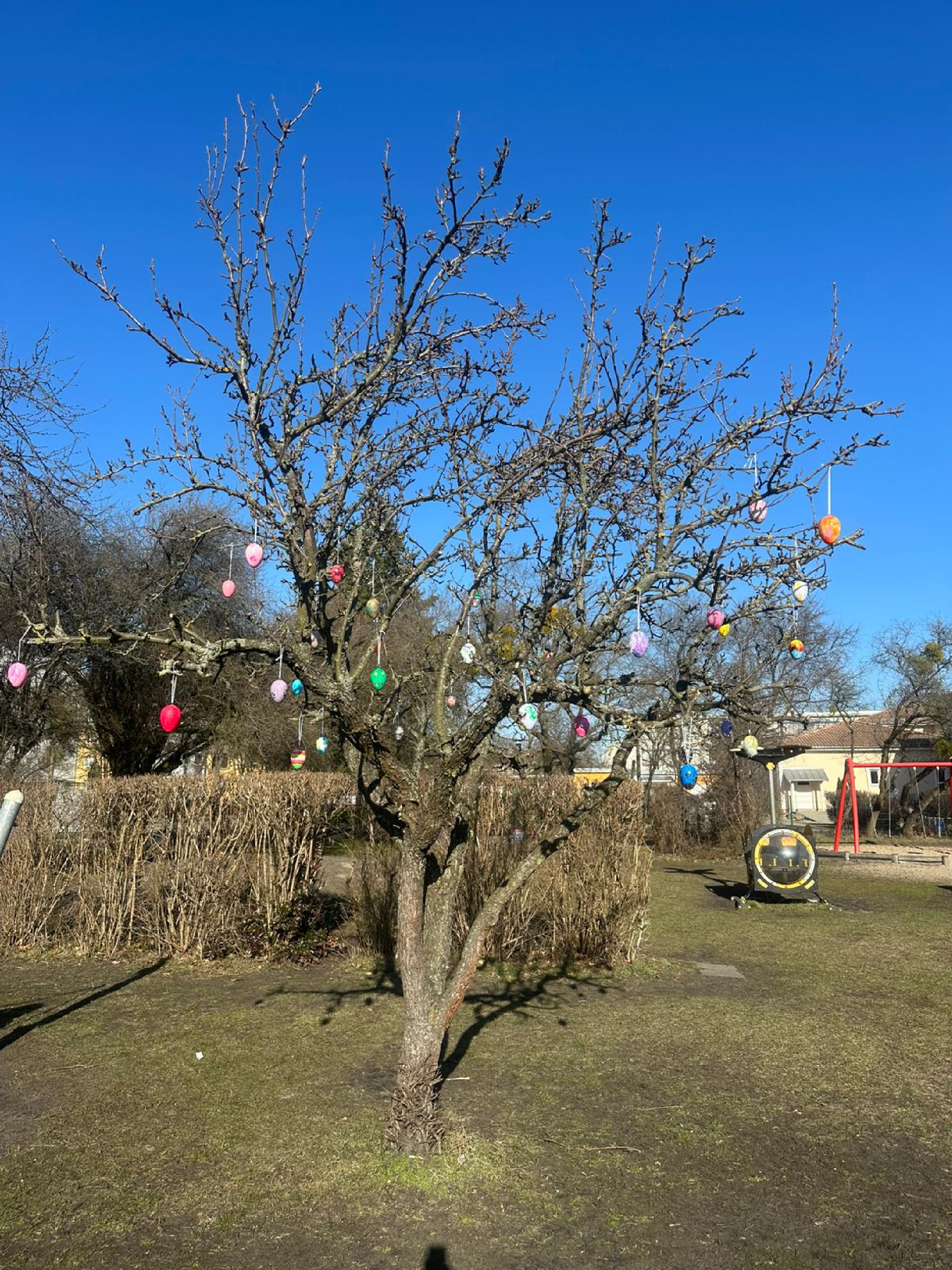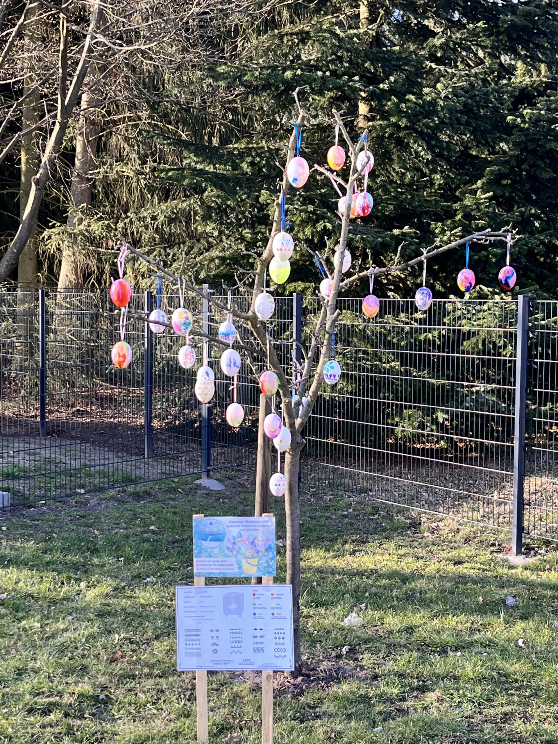 Einige Einrichtungen schickten uns Bilder vom Verzieren der Eier, den fertigen Resultaten oder dem Aufhängen der kleinen Kunstwerke.