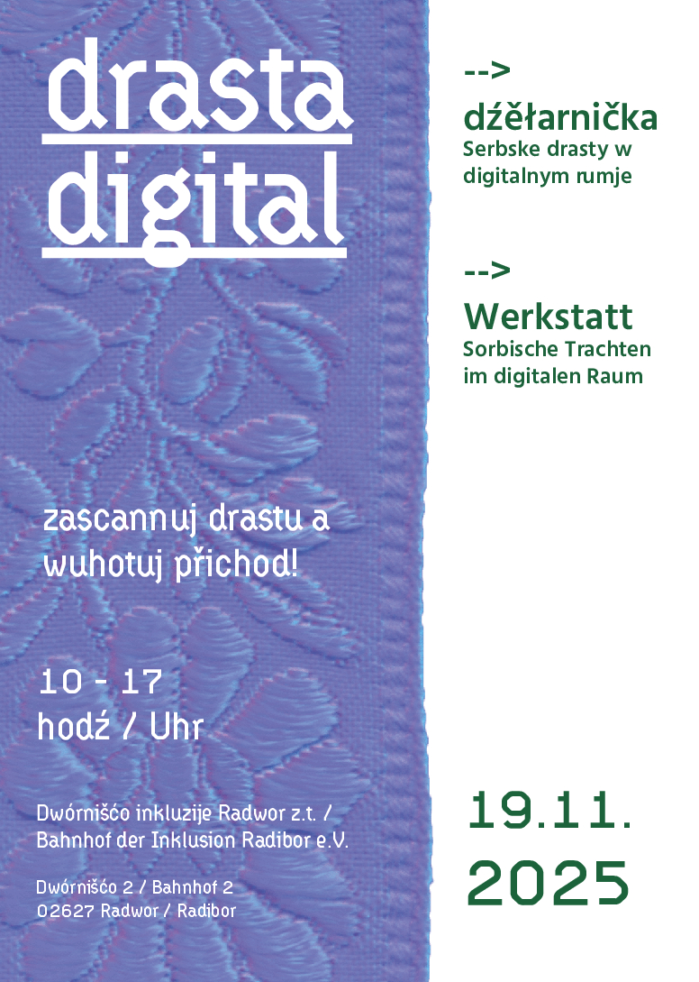Im November 2025 organisierte das Projekt Drasta Digital 4 Workshops, die sich mit der Digitalisierung sorbischer Trachtenelemente sowie der gesellschaftlichen Bedeutung von kulturellem Erbe im digitalen Raum beschäftigten. Am 19. November in Radibor und am 22. November in Cottbus trafen sich Expertinnen und Experten, Kulturinteressierte und digitale Innovatoren, um in die Welt der 3D-Rekonstruktion und des Textil-Scannens einzutauchen, sich auszutauschen und zu weiteren Diskussionen anzuregen.